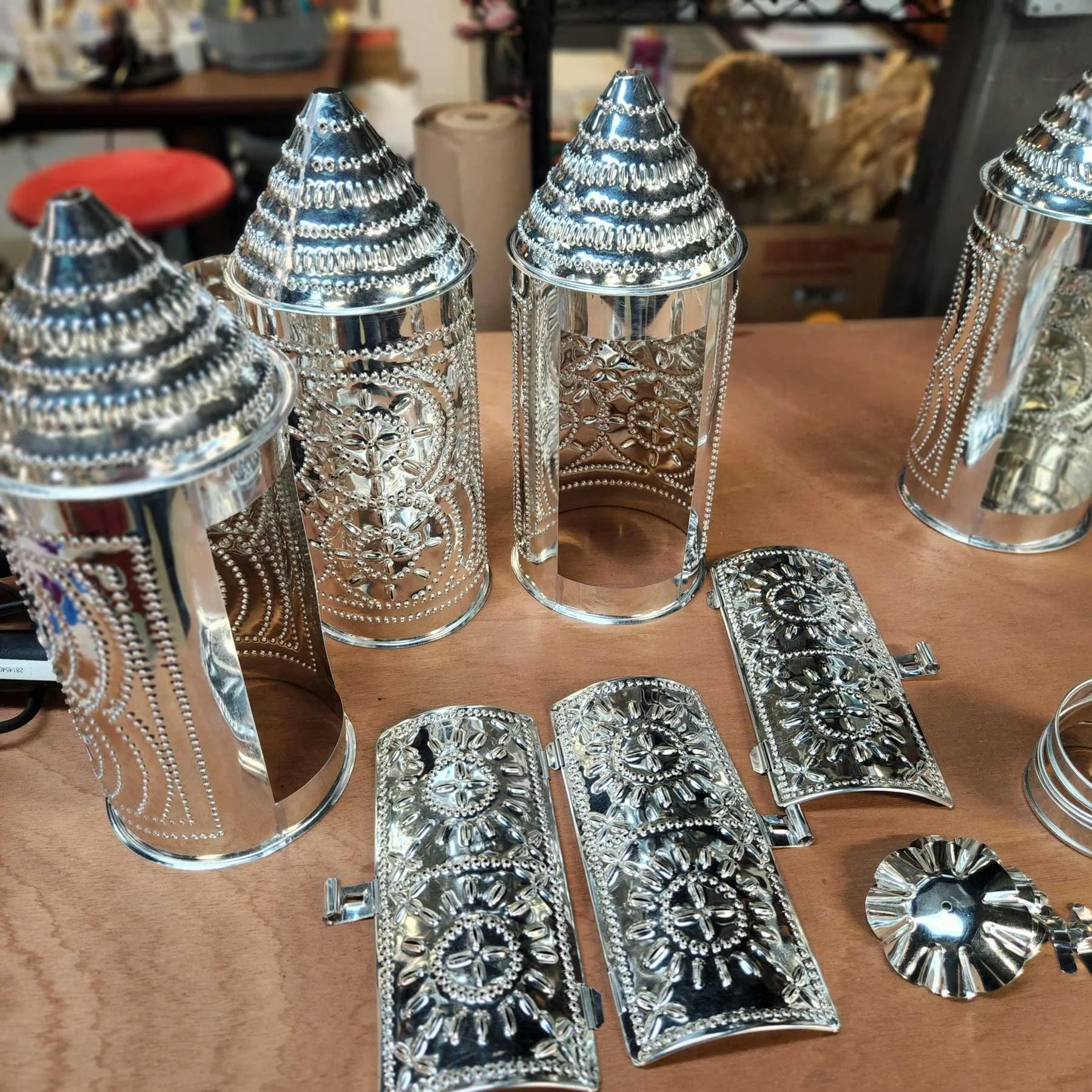 There is an old saying that paraphrases to “Ask any ten tinsmiths how to do something, and you will get ten different answers”. On more organized projects, I try to work out paper patterns of the major parts of a construction. These “first drafts” invariably get tweaked as each new lantern is made.